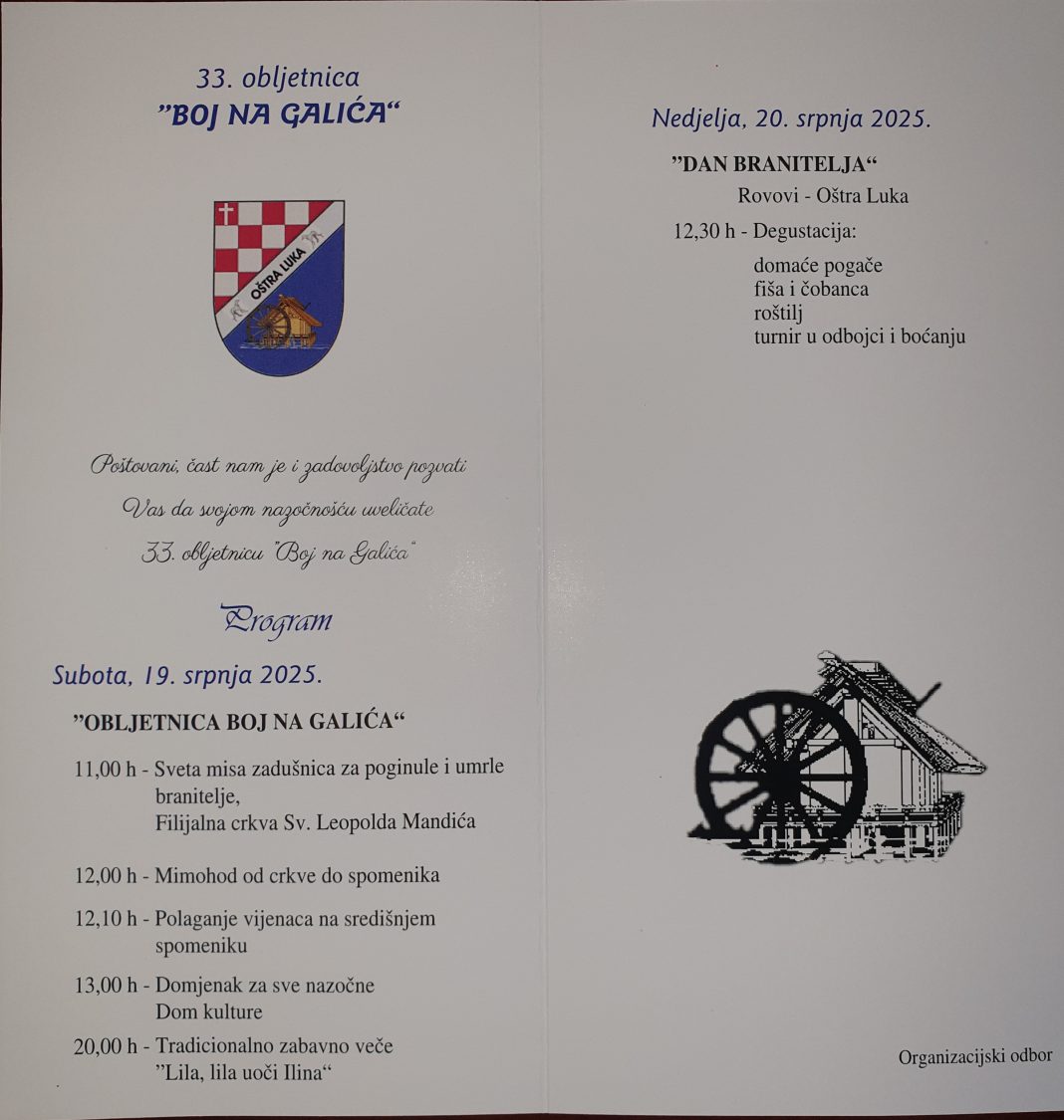 Središnji dio obilježavanja ovog povijesnog događaja, najavljen je za subotu 19. srpnja, upravo na 33. obljetnicu „Boja na Galića“.
