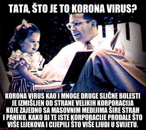 Facebookom se tako već tjednima širi fotografija s lažnom tvrdnjom da je “koronavirus (…) izmišljen od strane velikih koroporacija”. Fotografiju možete vidjeti niže.