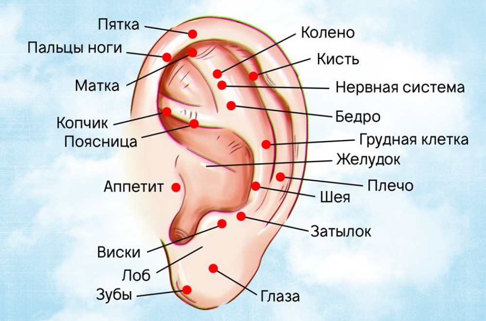 Kineski stručnjaci iz oblasti refleksologije posebno su izdvojili zonu ušne školjke, gde se nalazi veliki broj nervnih završetaka, povezanih sa svim unutrašnjim organima i delovima tela.